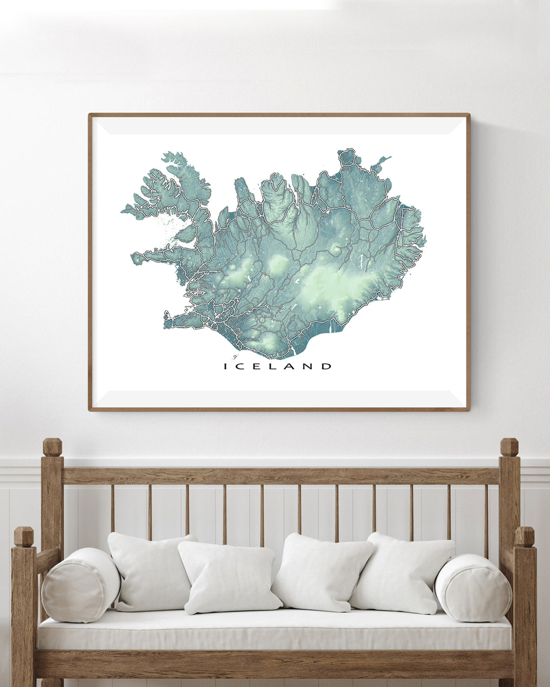 Bermuda Island Map Wall Art Print Poster, Watercolor Style Design Contour Maps, Coastal Decor
