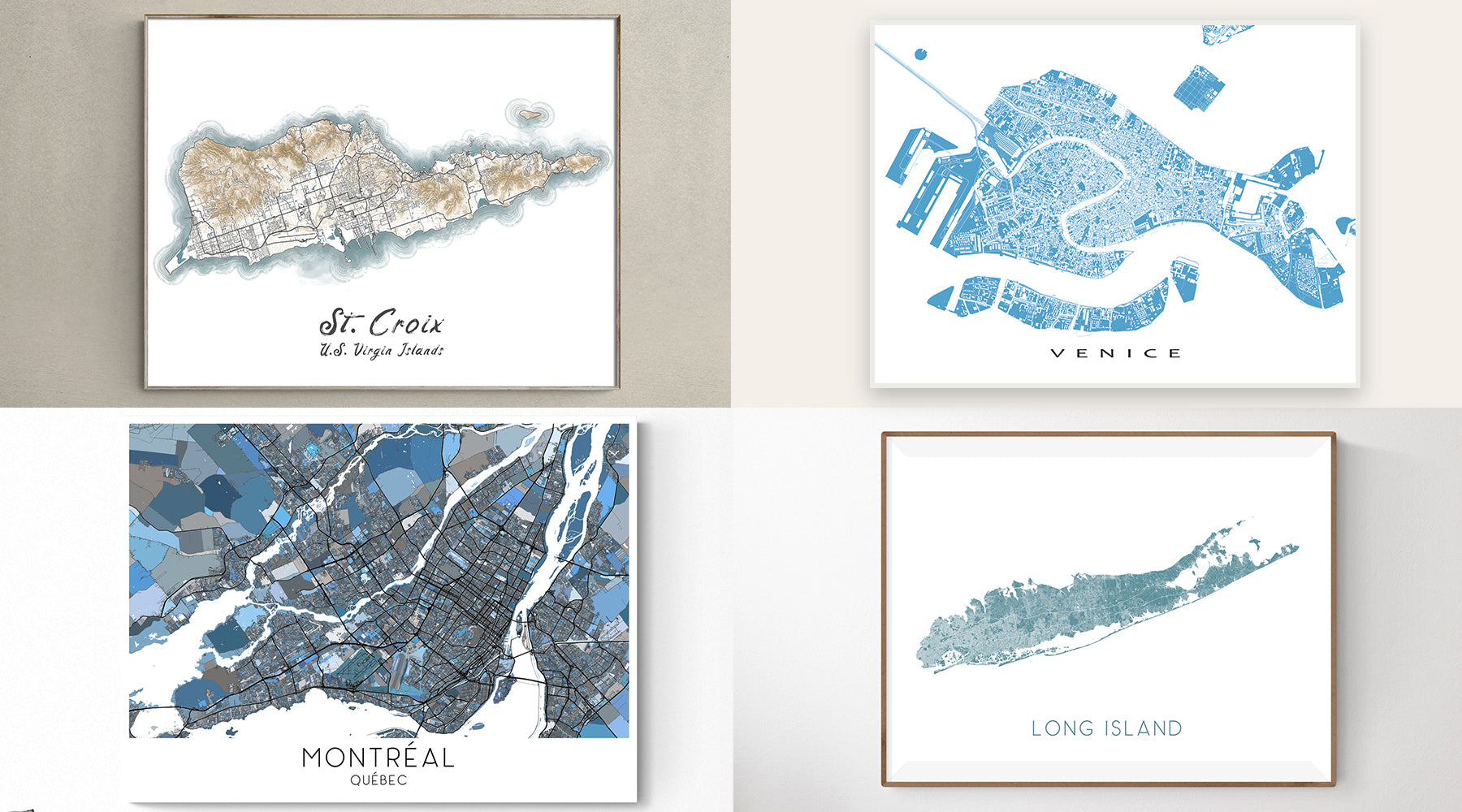 Nantucket Island Map Watercolor Style Coastal Decor Design Wall Art Print Poster, Contour Maps