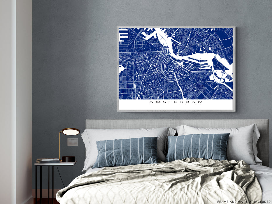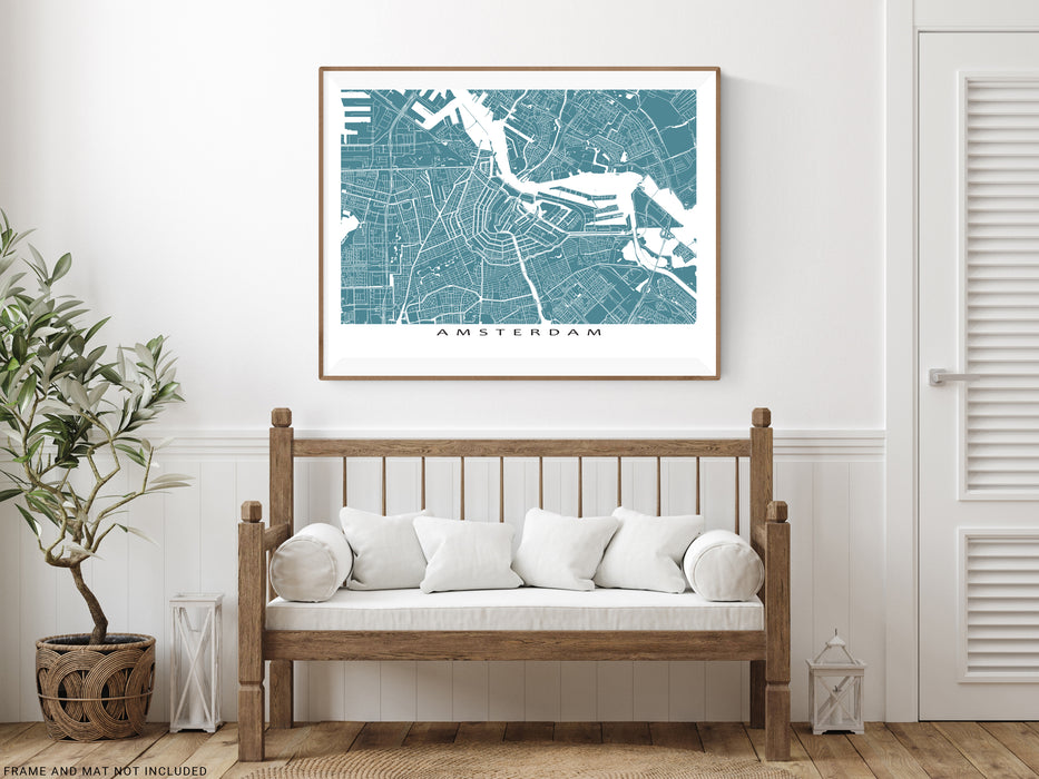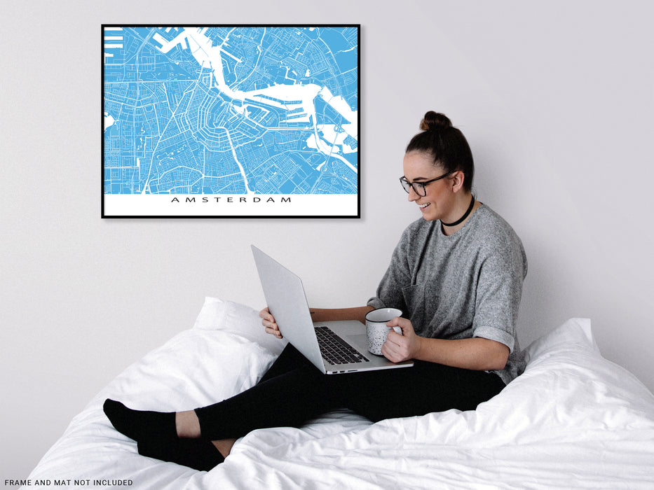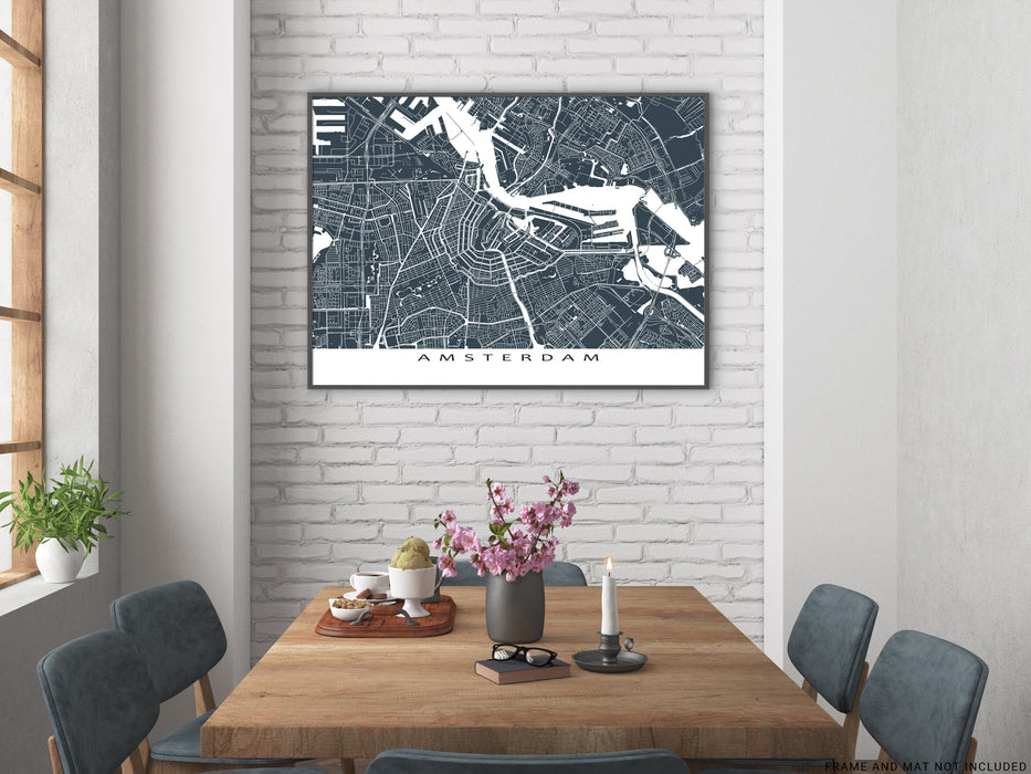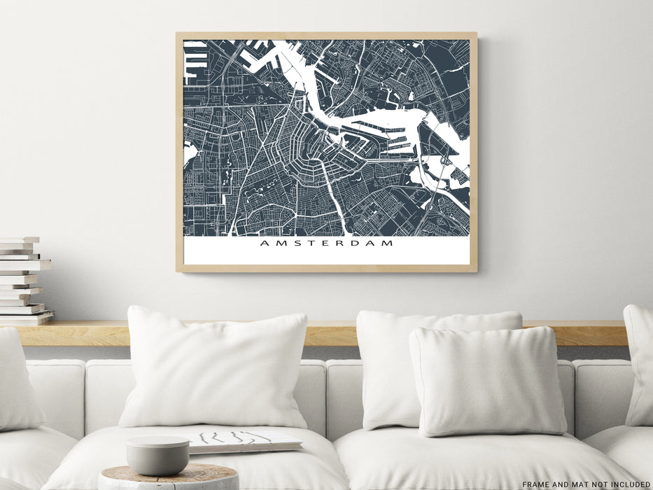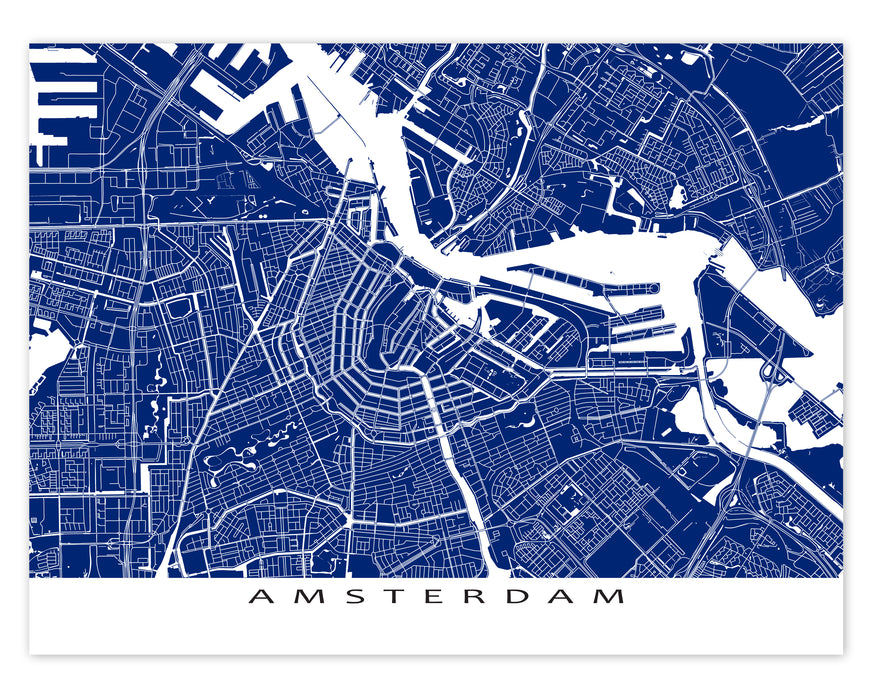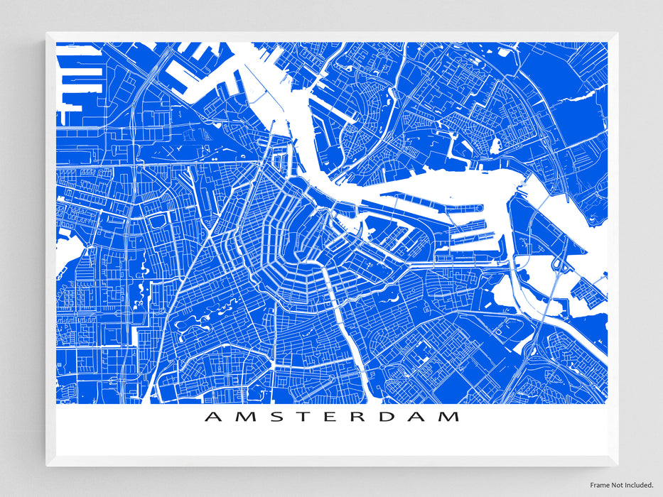 Amsterdam City Canals Street Map Wall Art Print Poster, the Netherlands, Holland