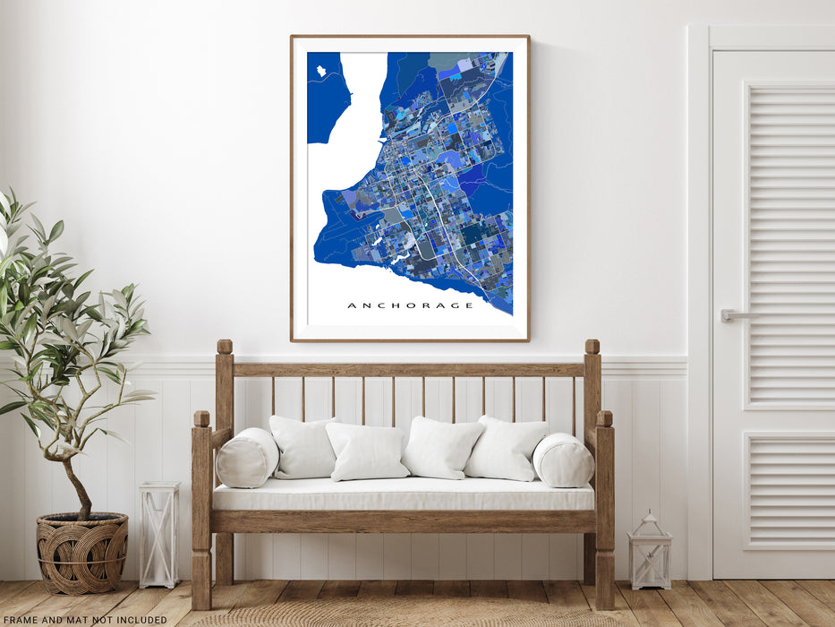 Anchorage Alaska Blue Geometric Map Wall Art Print Poster