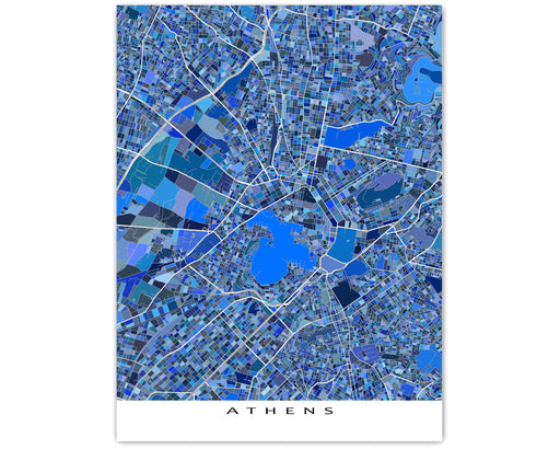 Athens Greece Map Wall Art Poster Print, Blue Geometric Abstract City Street Road Maps
