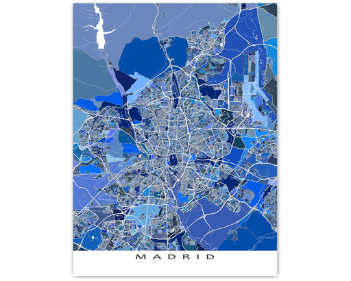 Madrid Map Print Poster, Spain Blue Geometric City Street Maps for Home Wall Art Decor