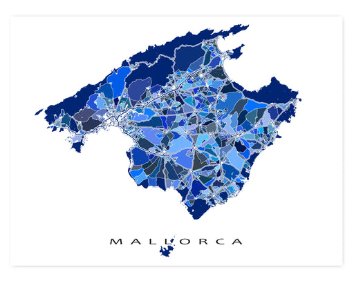 Mallorca Map Print, Blue Geometric Majorca Spain Island Art Prints, Palma