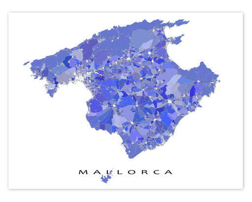 Mallorca Spain Island Map Print, Blue Purple Geometric Majorca Poster Wall Art Maps