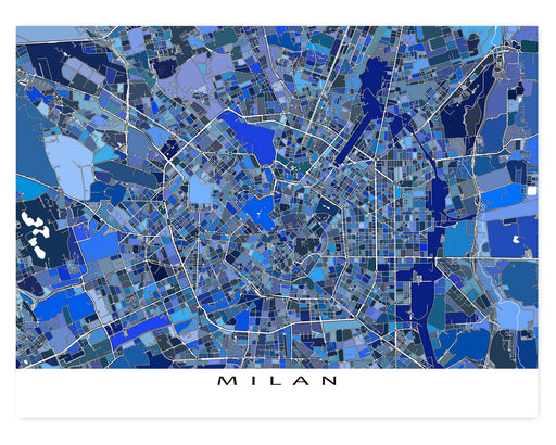 Milan Italy City Street Map Wall Art Print Poster with Blue Geometric Design
