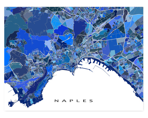 Naples Italy Map Wall Art Print Poster with Blue Geometric Design