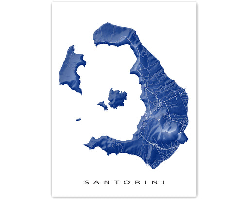 Santorini Map Wall Art Print Poster, Cyclades Greece Island Maps, Thira
