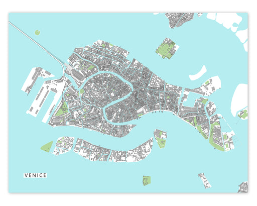 Venice Map Wall Art Print Poster with Buildings for Home Decor, Venezia Italy City Maps