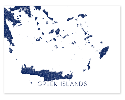 Greek Islands Map Art Print - Map of the Greek Islands Greece Poster Maps, Santorini