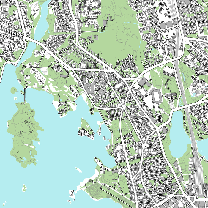 Discover Helsinki with this modern and interesting art print! Featuring city buildings, streets, railways, water bodies, and parks, this design highlights must-see landmarks like Helsinki Cathedral, National Museum, and Uspenski Cathedral.