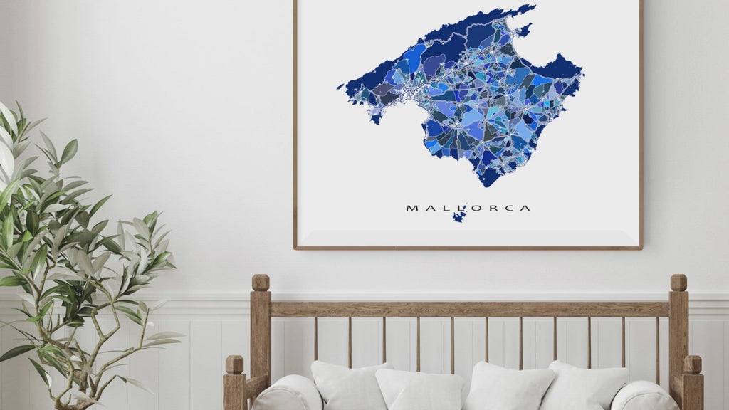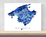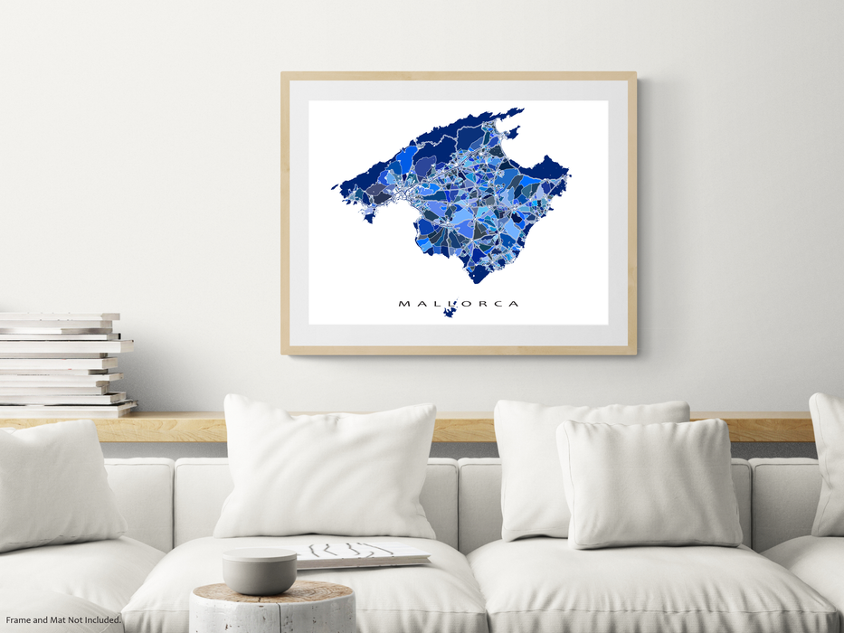 Mallorca Map Print, Blue Geometric Majorca Spain Island Art Prints, Palma