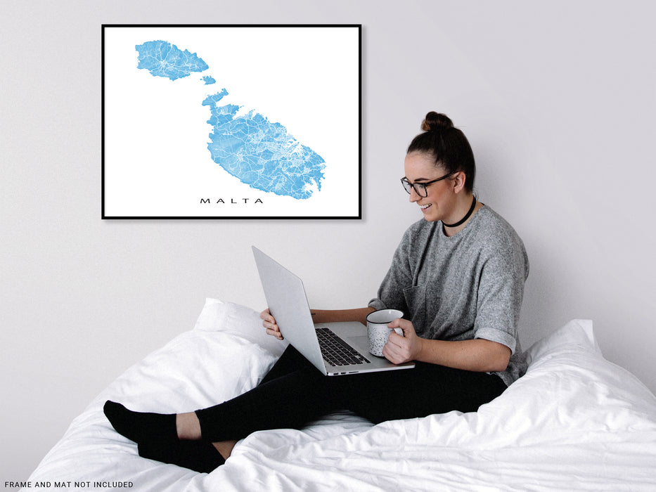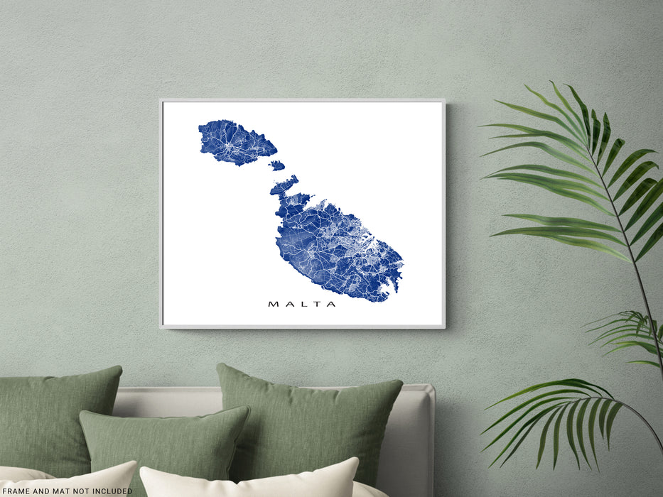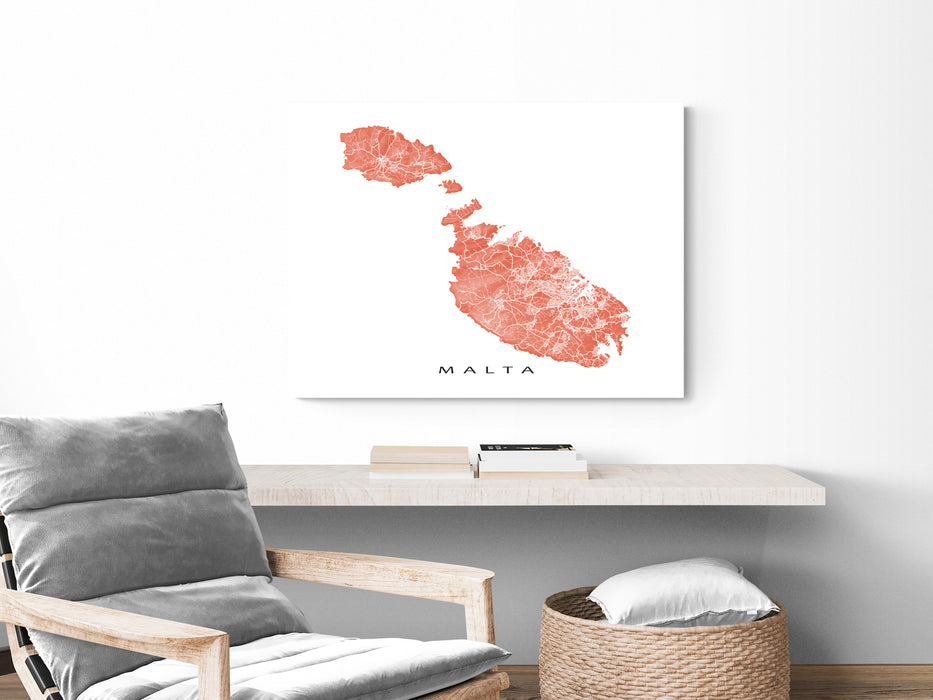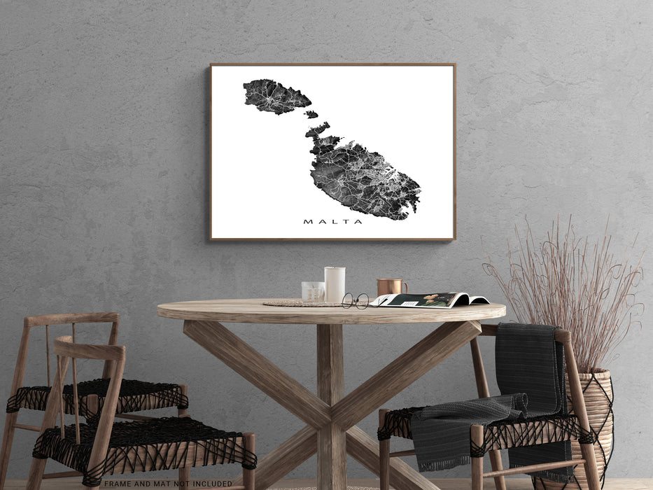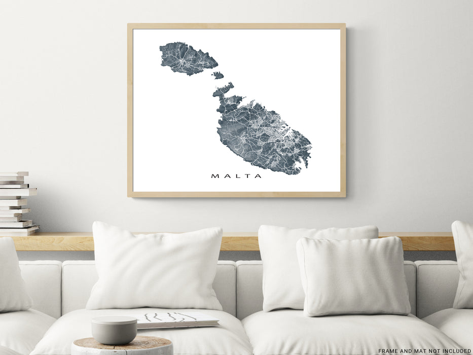 Malta Map Wall Art Print, Topographic Malta Island Maps for Home Decor, Valletta