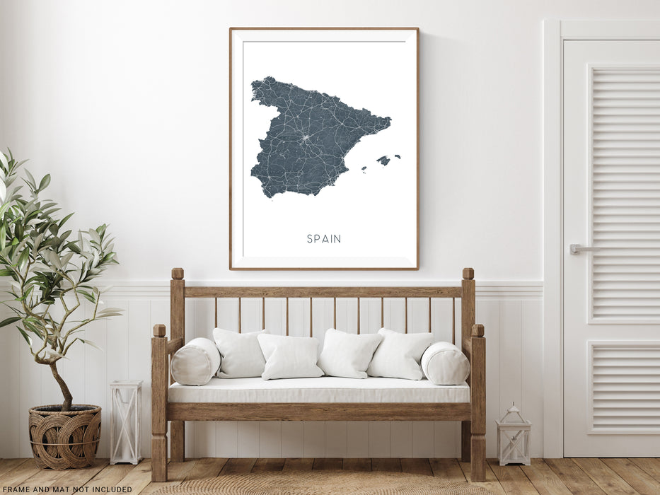 Spain Map Print - Map of Spain Wall Art Poster, Country Maps, Barcelona, Madrid