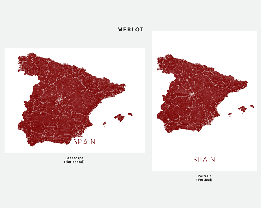 Do you have a personal connection to Spain? Perhaps you live there or dream of visiting? Maybe you're planning a wedding or looking for a memorable travel gift? Honor your connection to Spain with our map - a wall art print poster featuring detailed 3D topographic landscape features.