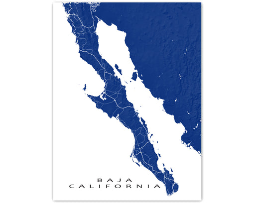 Baja California Mexico Map Print Poster, Baja Peninsula Sur Wall Art Road Maps, Cabo San Lucas