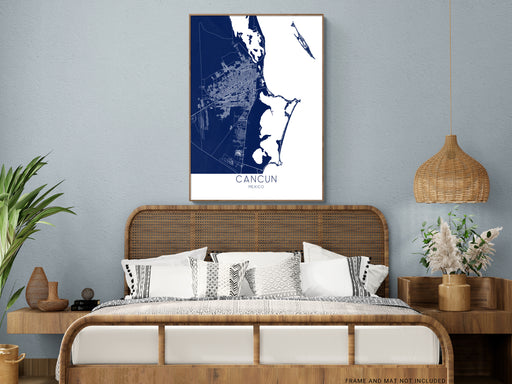 Cancun Map Print - Map of Cancun Mexico, Cancun Wall Art Decor, Isla Mujures Yucatan Mayan Riviera