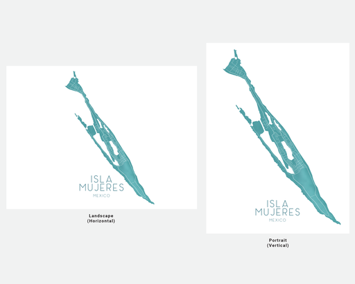 Isla Mujeres Mexico Map Print Poster, Turquoise Island Wall Art Street Maps, Yucatan