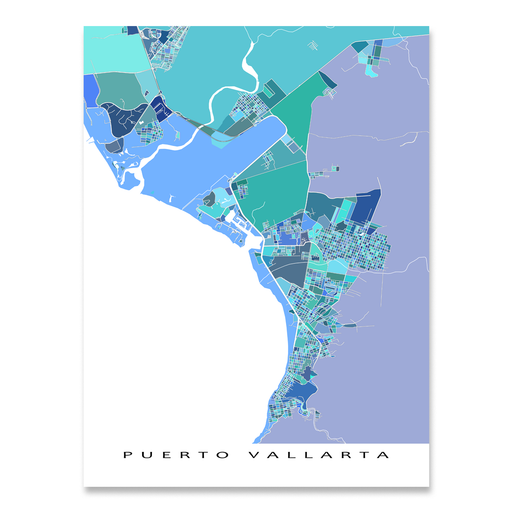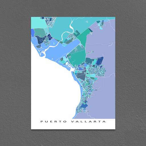 Puerto Vallarta Mexico CIty Wall Art Map Print Poster with Geometric Design, Nuevo Vallarta