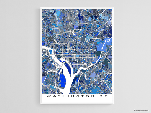 Washington DC Map Wall Art Print, Blue Geometric District of Columbia USA Poster