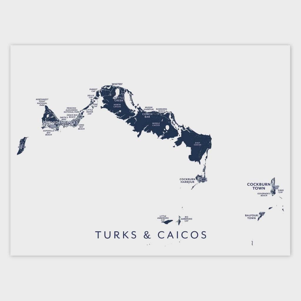 Turks & Caicos Island Map Print: Custom Labelled Wall Art Poster