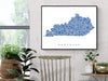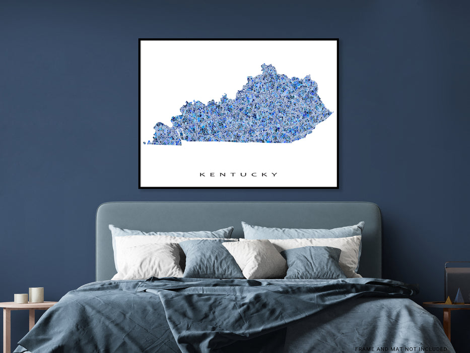 Kentucky State Map Wall Art Print Poster, Blue Geometric KY Road Maps, Louisville