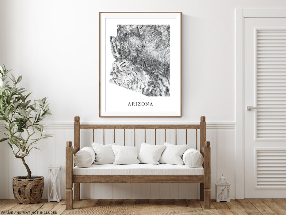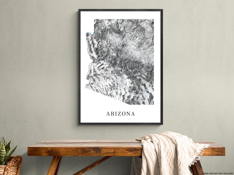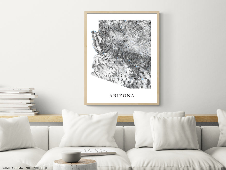 Arizona Map Print Poster - Black and White Topographic Arizona Wall Art Prints, AZ State Road Maps