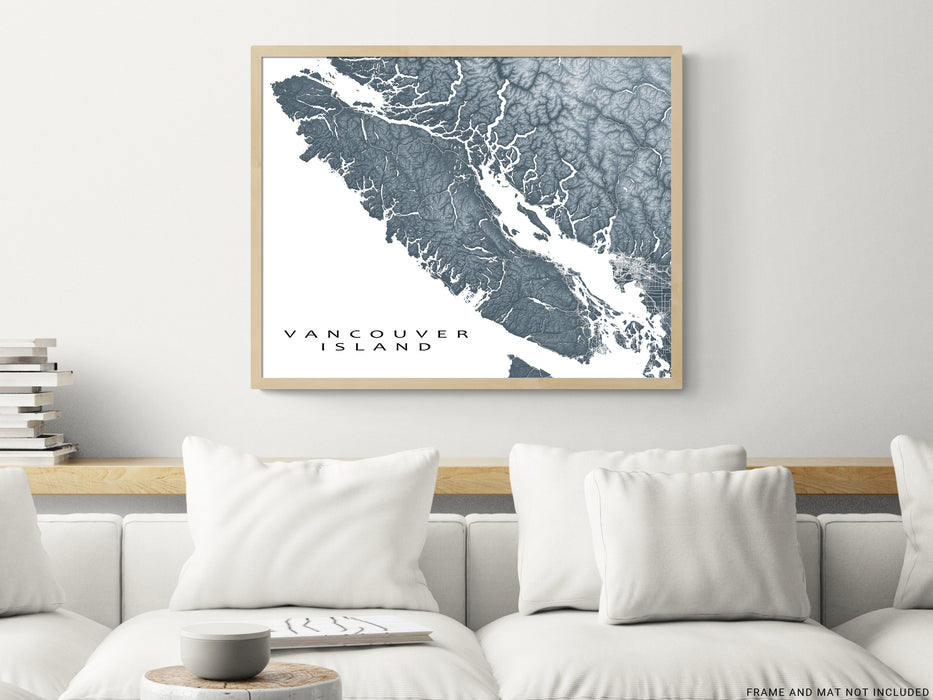 Perfect for both home and office, this modern and informative map art is available in various colours and sizes to suit your style. A must-have for any Vancouver Island fan!