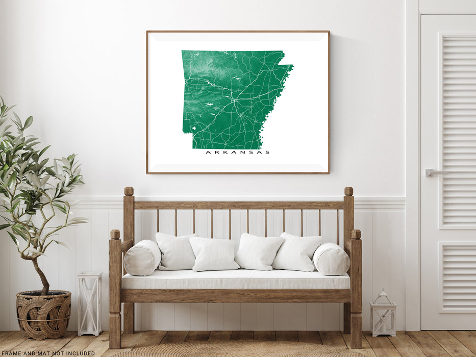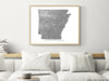 Add a modern touch to your living spaces or office with this unique map print, available in various colors and sizes. Show your love for Arkansas with this beautiful and educational piece.