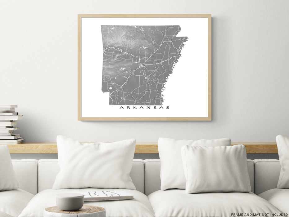 Arkansas State Map Wall Art Print Poster, Topographic Landscape AR Road Maps, USA