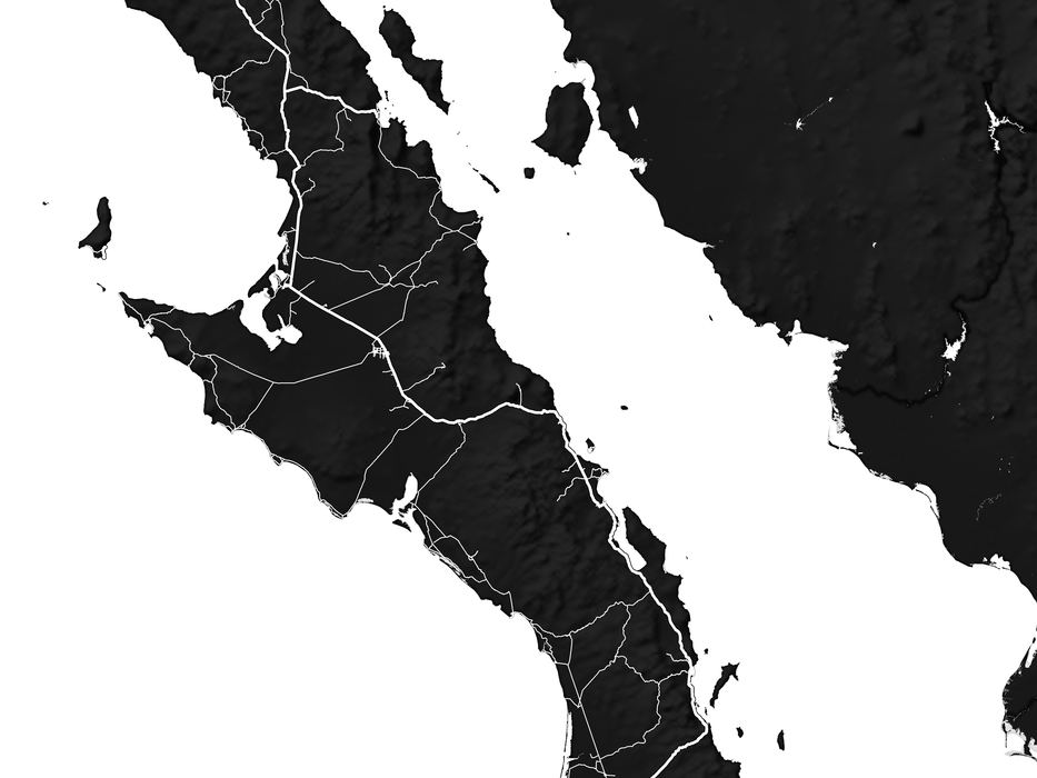 This Baja California Map Print Poster features the natural landscape of the Baja Peninsula, including mountains, plains, canyons and shorelines from the states of Baja California and Baja California Sur, Mexico.