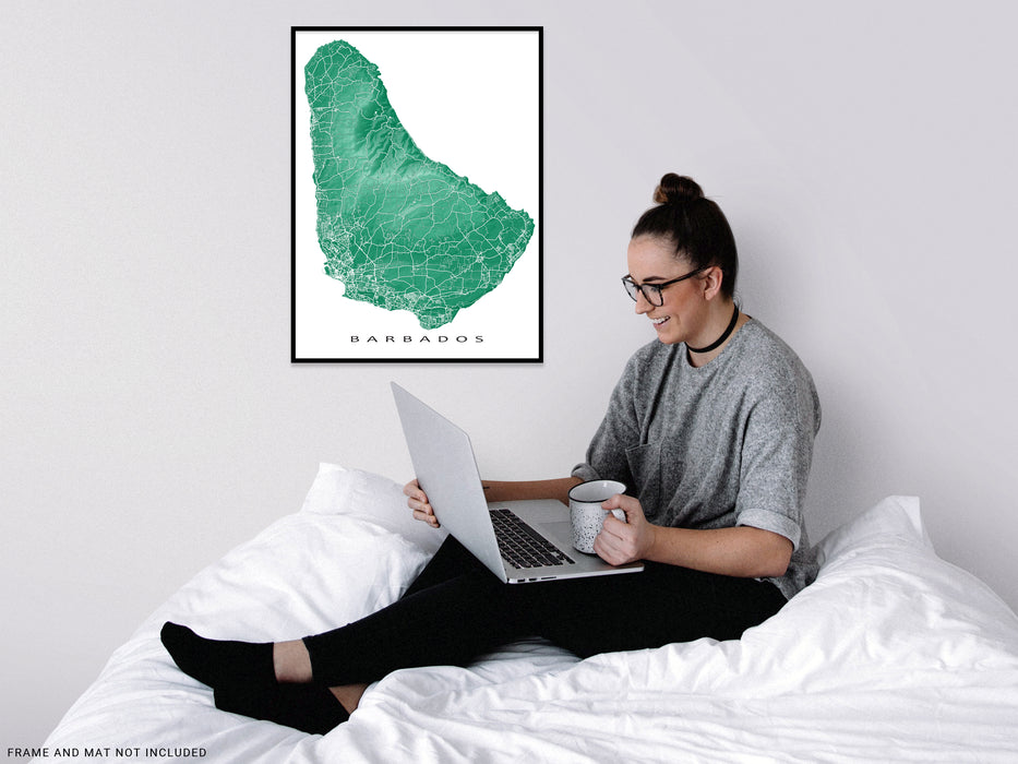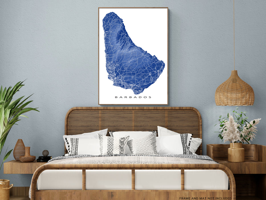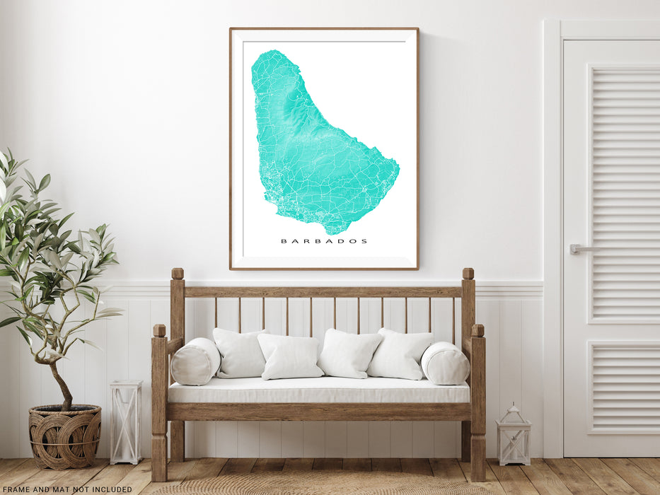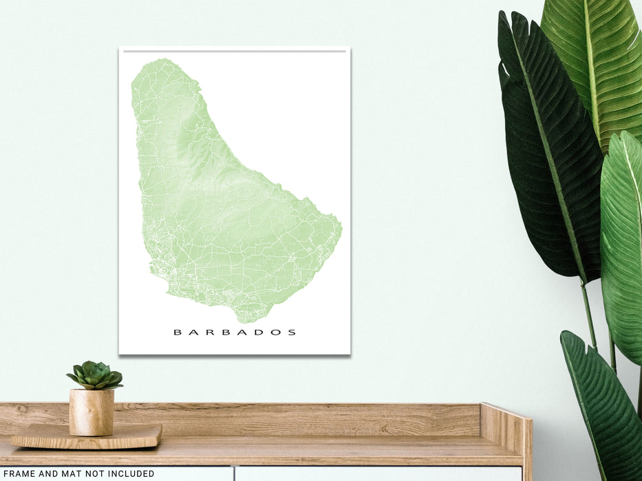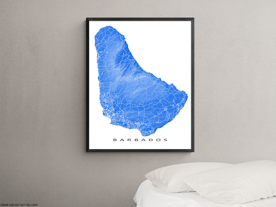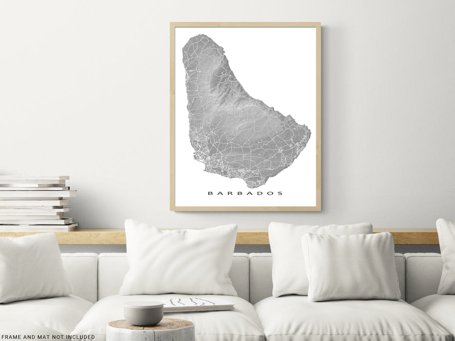 Barbados Map Wall Art Print Poster, Topographic Caribbean Island Road Maps, Bridgetown
