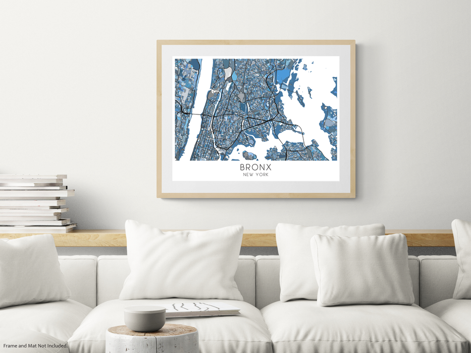 Bronx Map of The Bronx New York City Maps, Blue Geometric NYC Art Prints