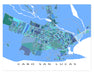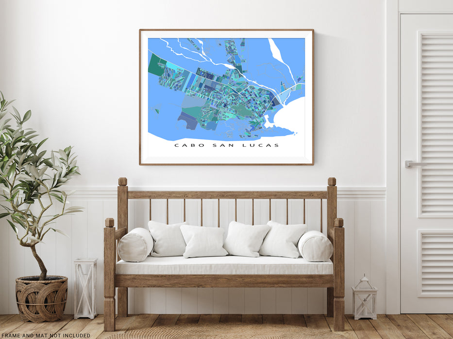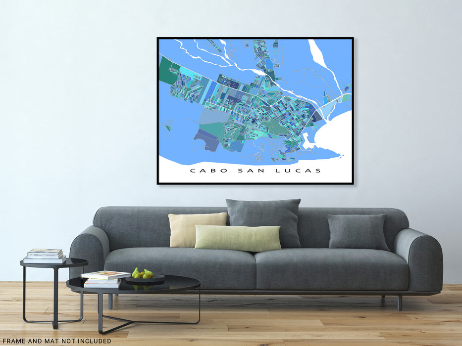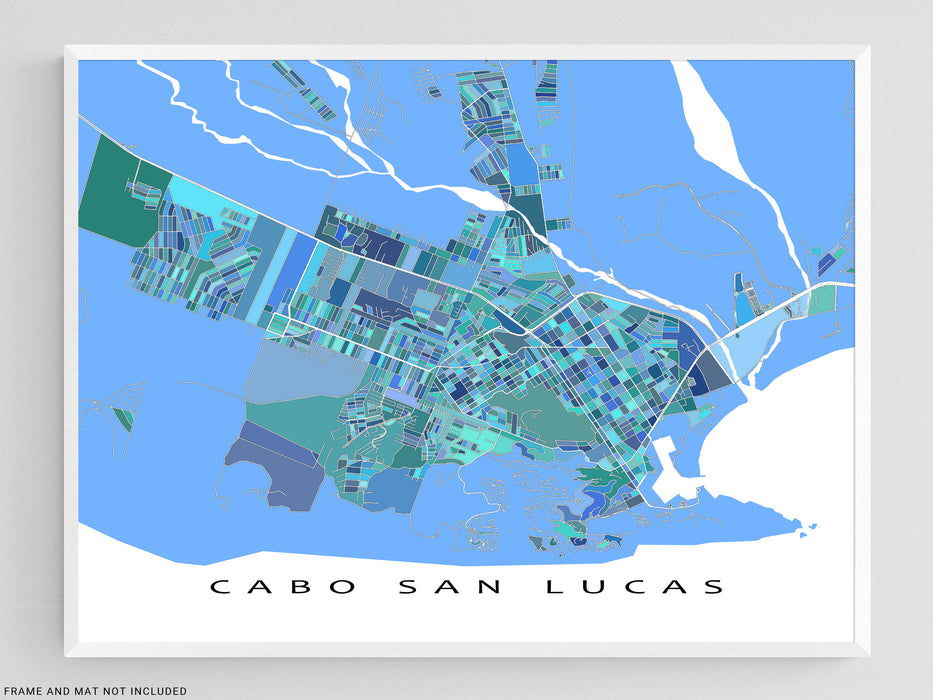 Cabo San Lucas Map Wall Art Print, Mexico Blue Green Geometric City Street Maps