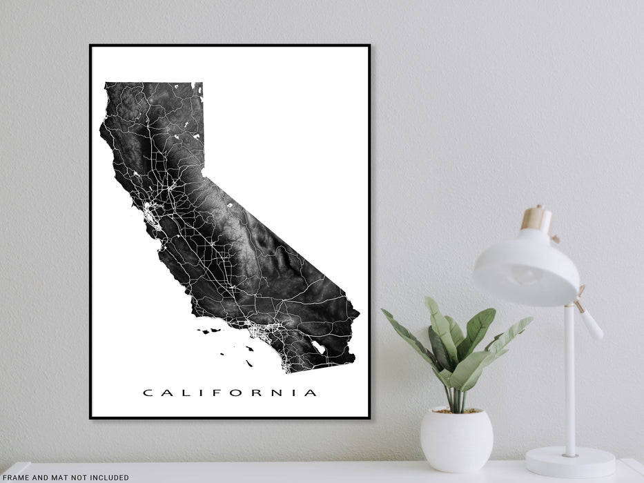 California State Map Print Poster, Topographic CA Wall Art Road Maps, Los Angeles San Francisco San Diego