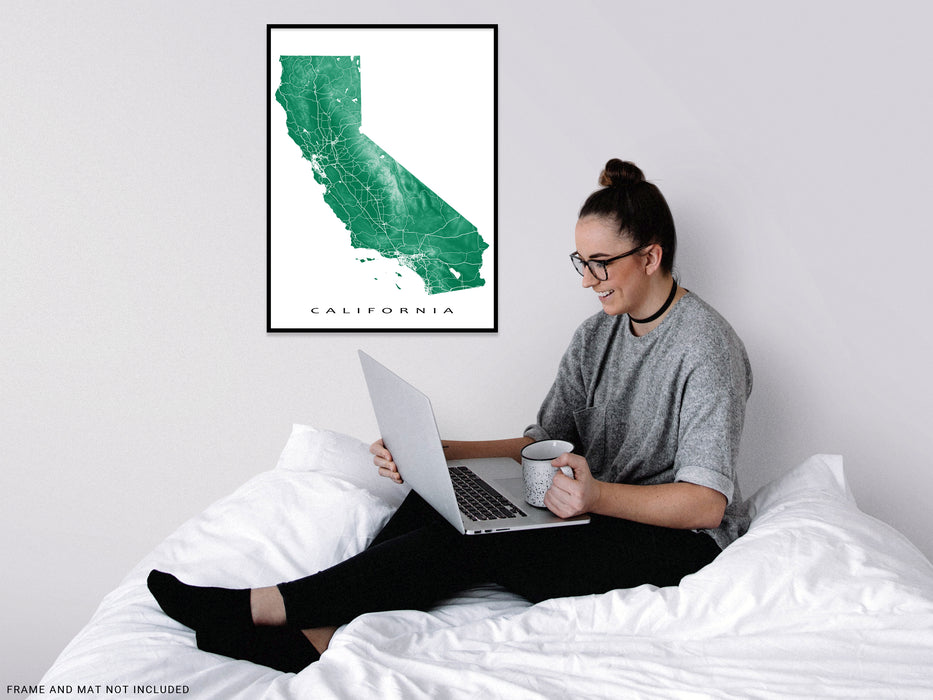 With a modern and noteworthy design, this map print is the perfect addition to any living space or office. Show off your love for California with this unique and educational piece. Choose from a variety of colors and sizes to suit your style.