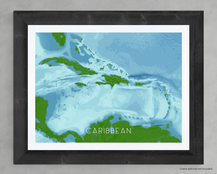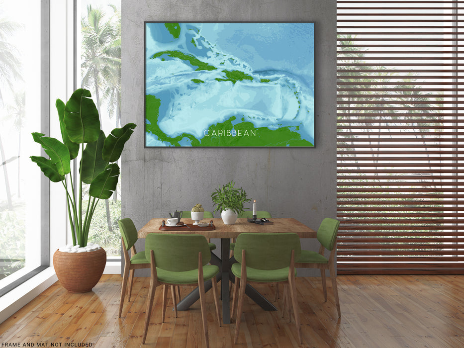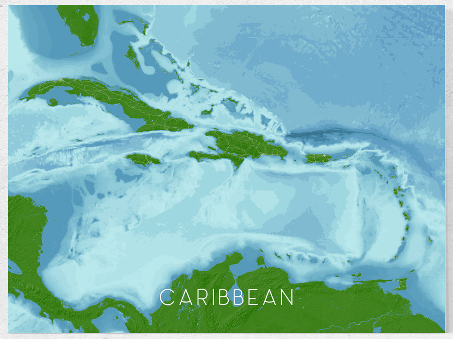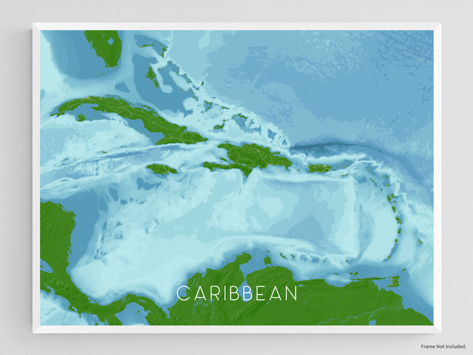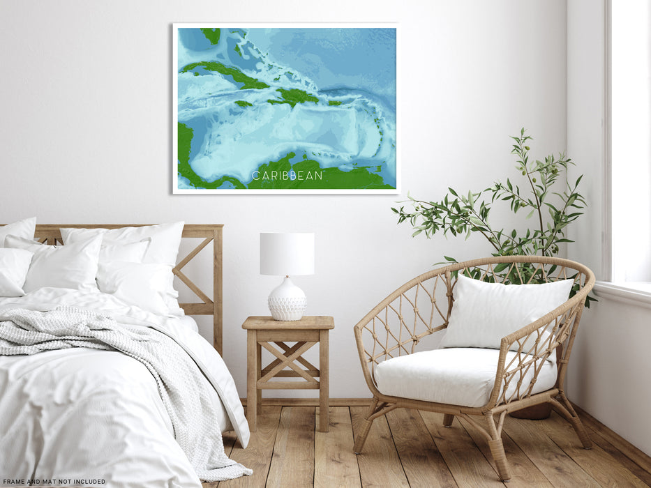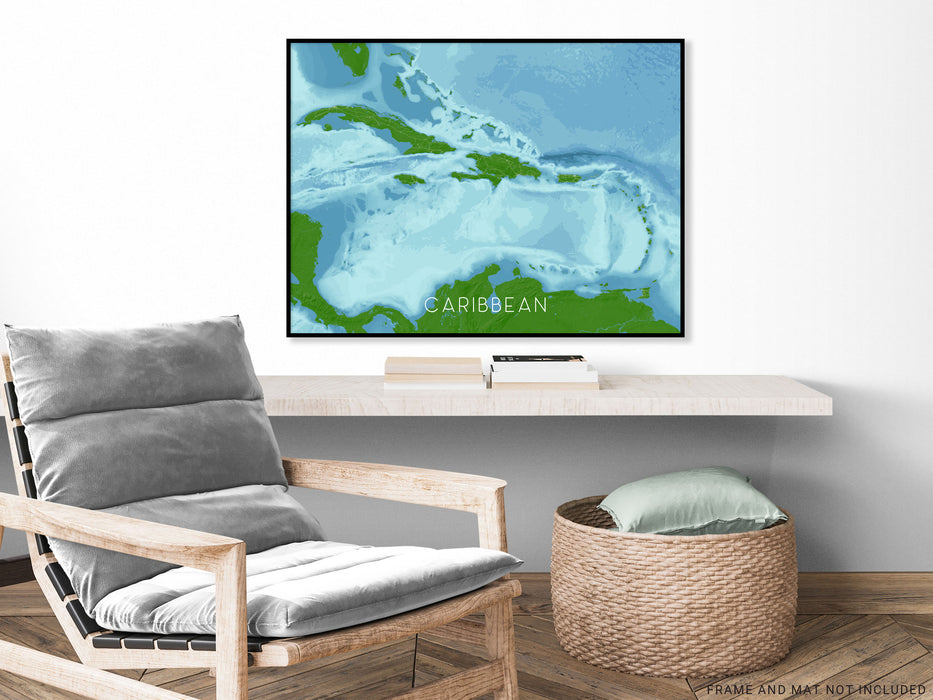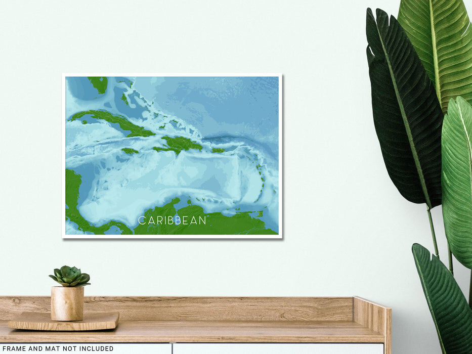 Caribbean Sea map art print with a tropical vibe inspired by the ocean and the beautiful islands.