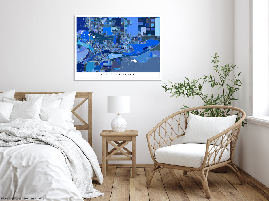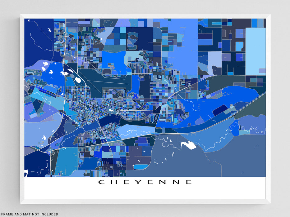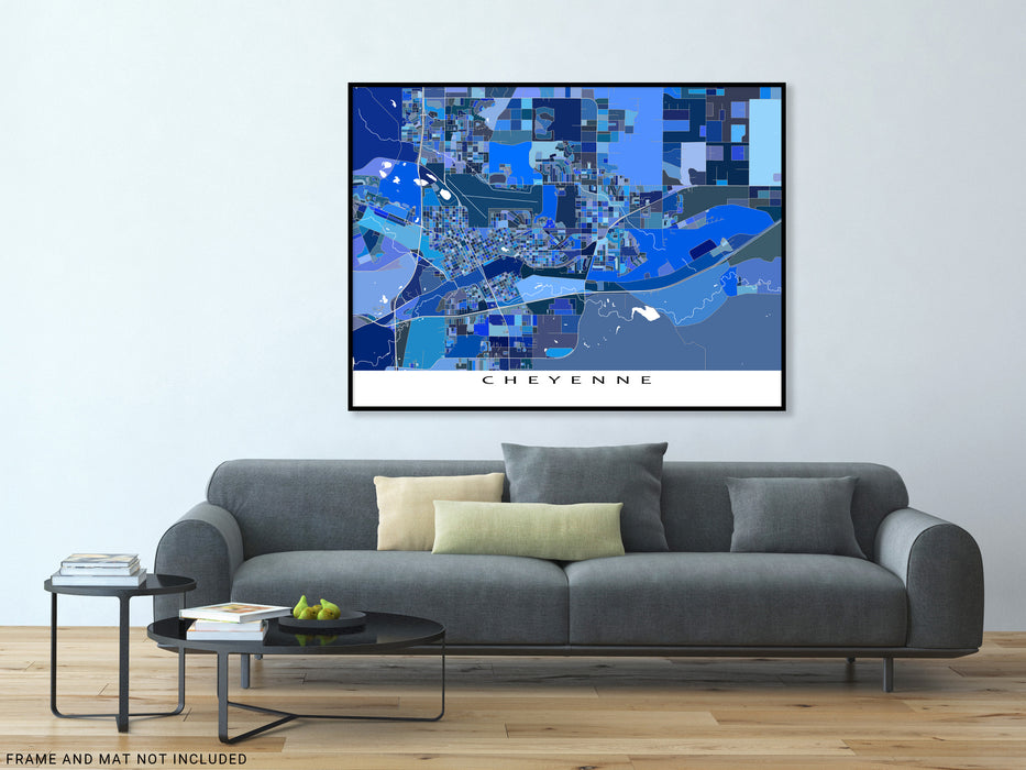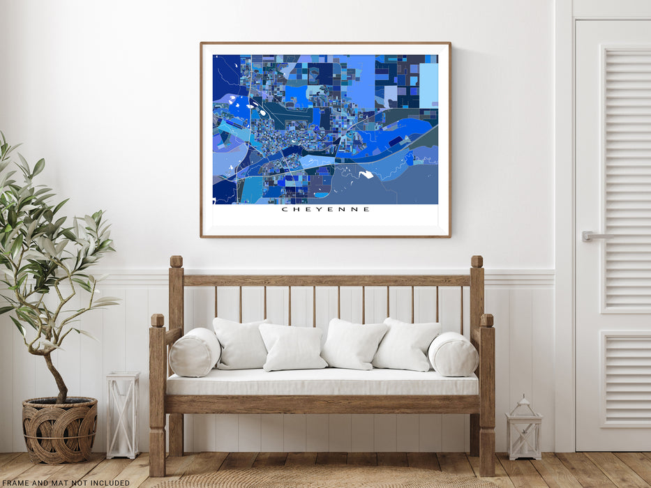 Cheyenne Wyoming City Map Print Poster with Blue Geometric Wall Art Design