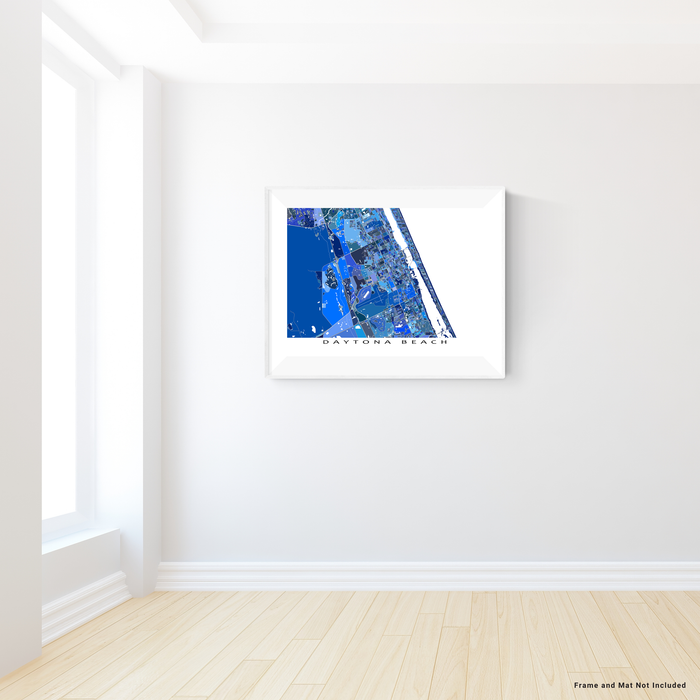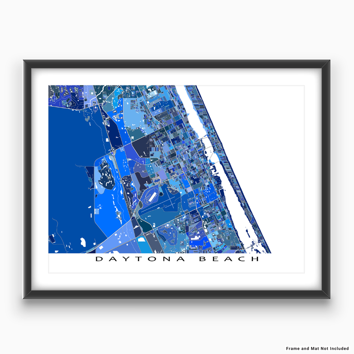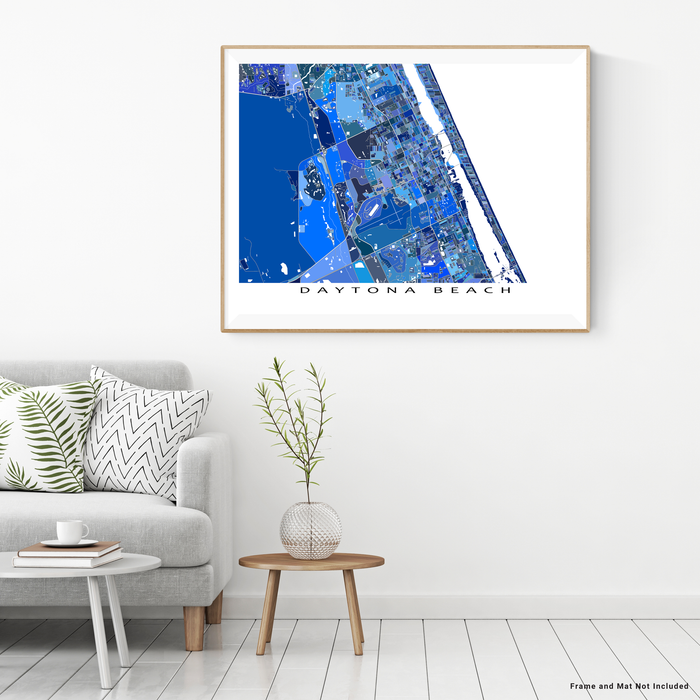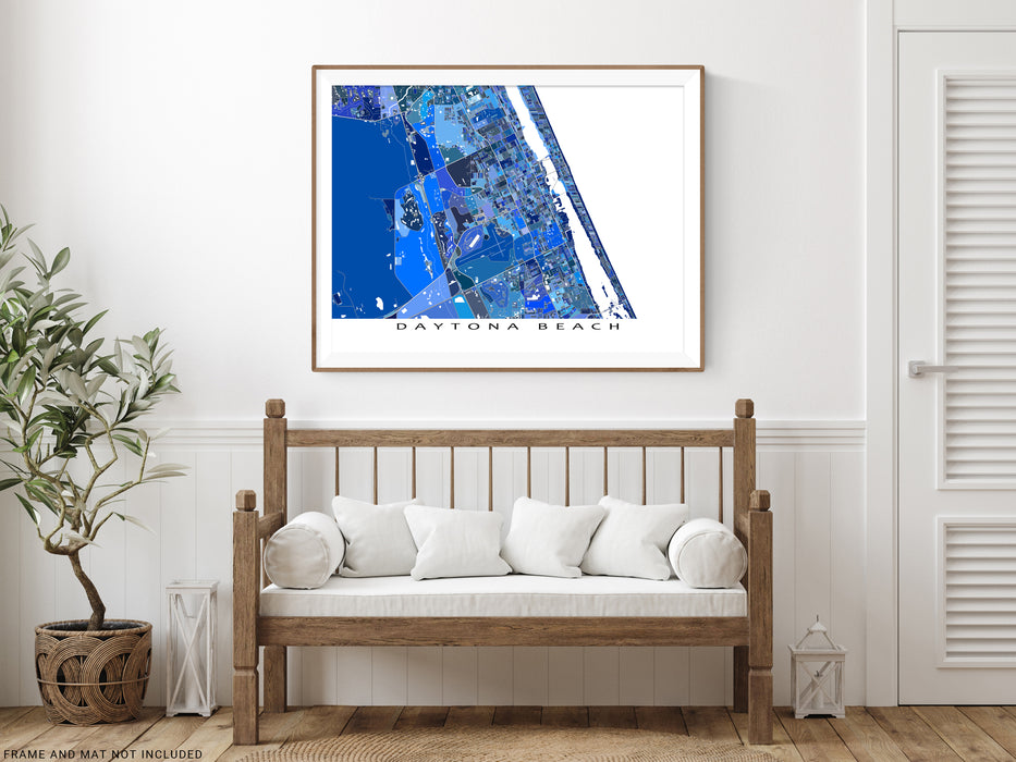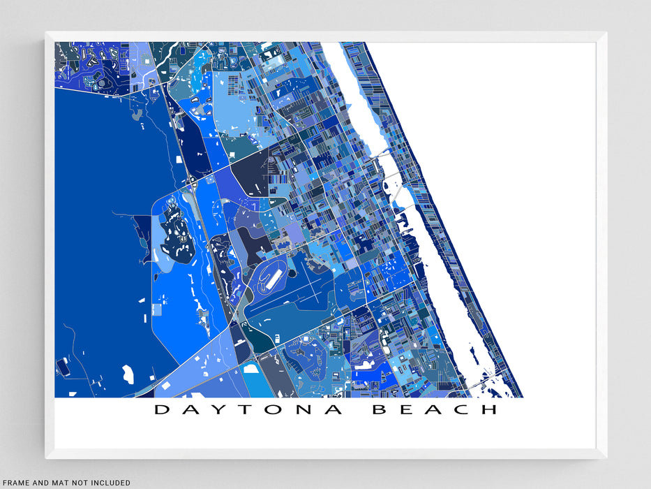 Daytona Beach Florida City Map Wall Art Poster Print with Blue Geometric Design
