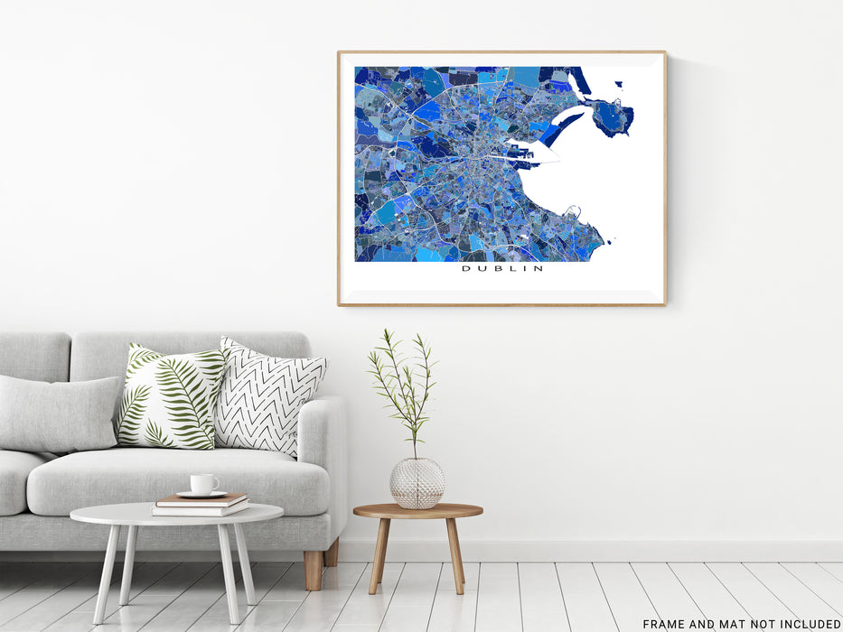 Dublin Map Print, Blue Geometric Ireland Wall Art Poster Maps