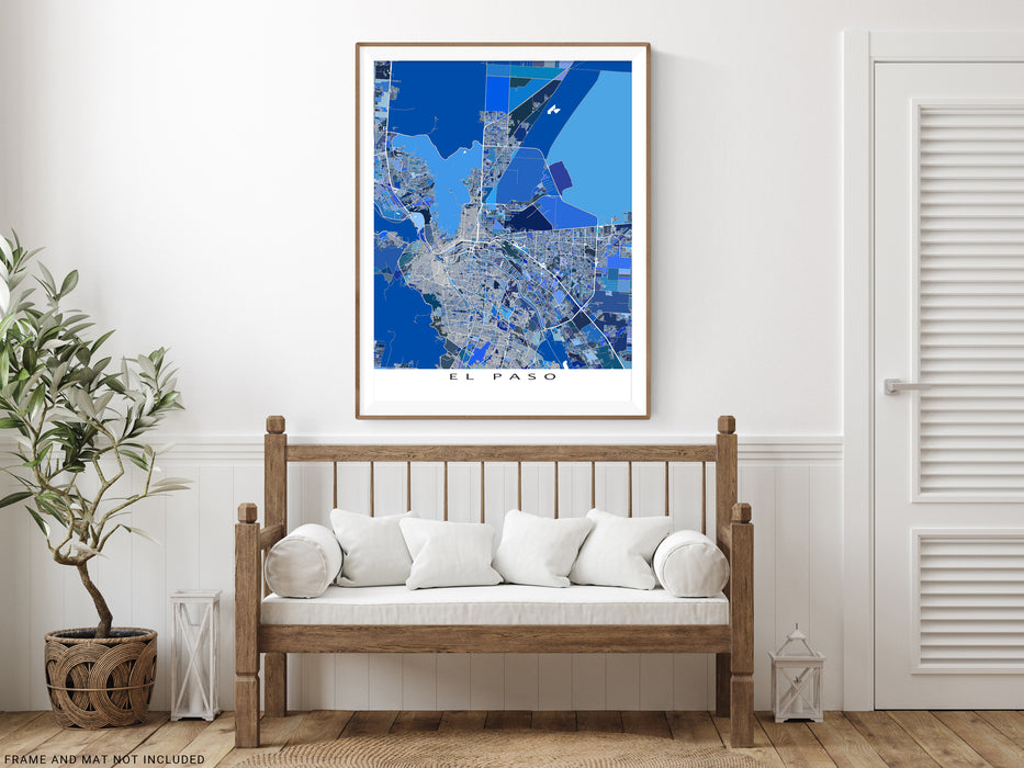 El Paso Texas City Map Print Poster with Blue Geometric Wall Art Design