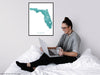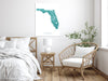 Florida Map Wall Art Print Poster, Turquoise Topographic FL State Road Maps, Keys Miami Key West Orlando