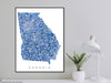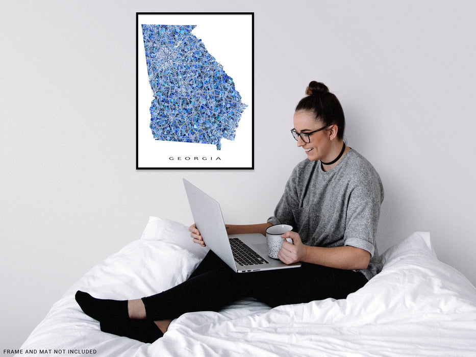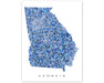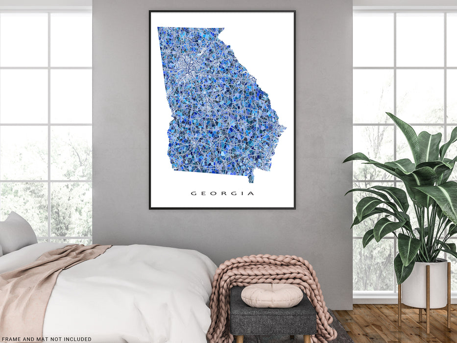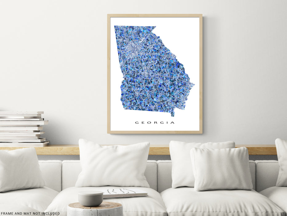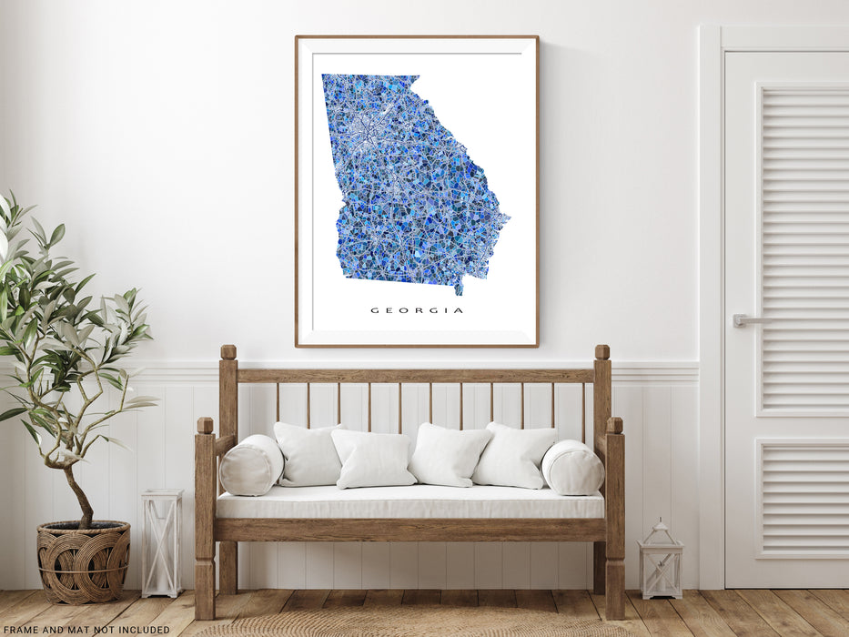Georgia Map Wall Art Print, Blue Geometric GA State Poster Road Maps, USA Atlanta Savannah
