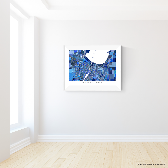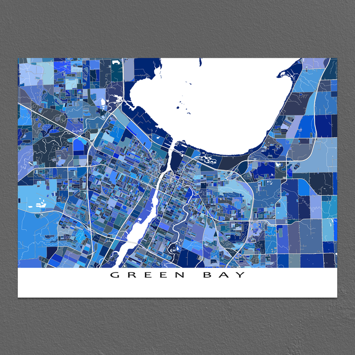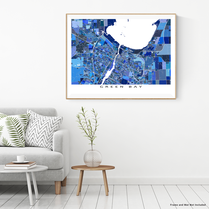 Green Bay Wisconsin City Map Wall Art Print Poster with Blue Geometric Style Design