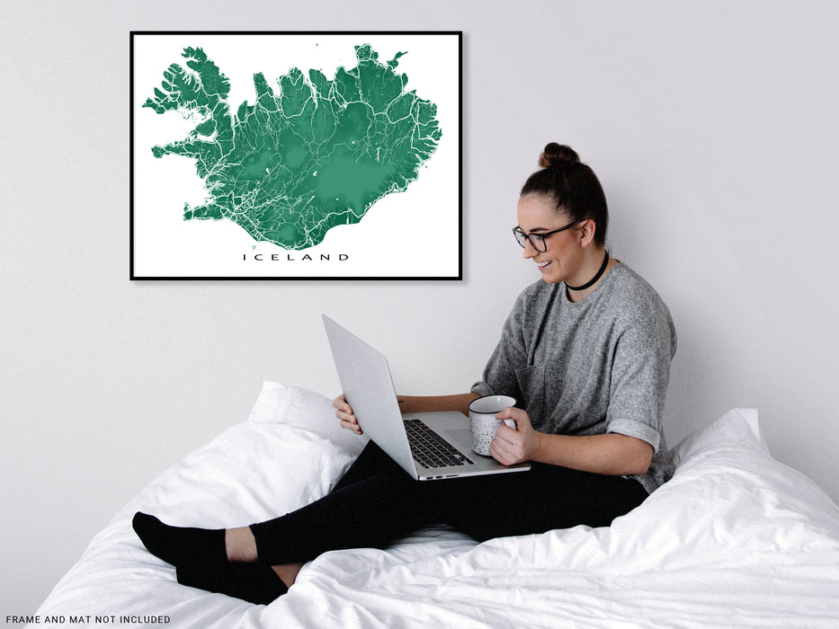 Iceland Map Wall Art Print, Topographic Landscape Iceland Poster Road Maps, Reykjavik