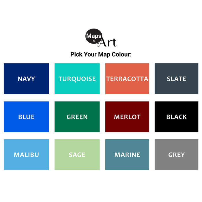 Maps As Art prints are designed and made by us in our studio using premium quality papers and inks with professional grade printers.