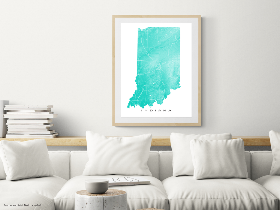 Indiana Map Print, Topographic IN State of Indiana Wall Art Poster Maps