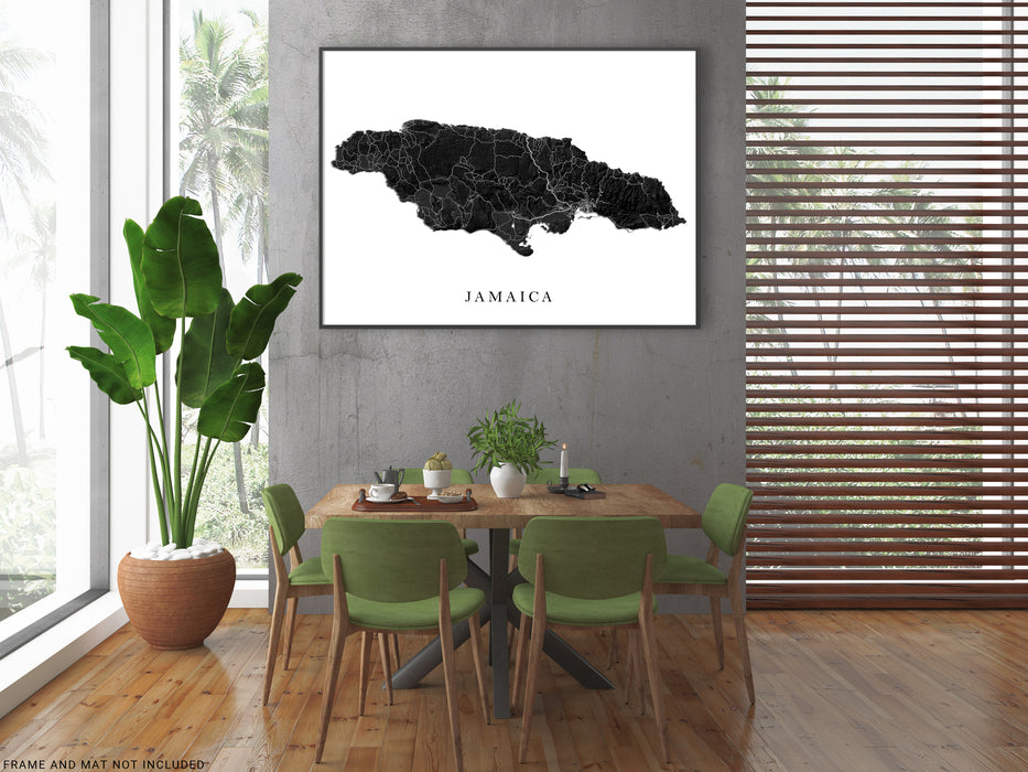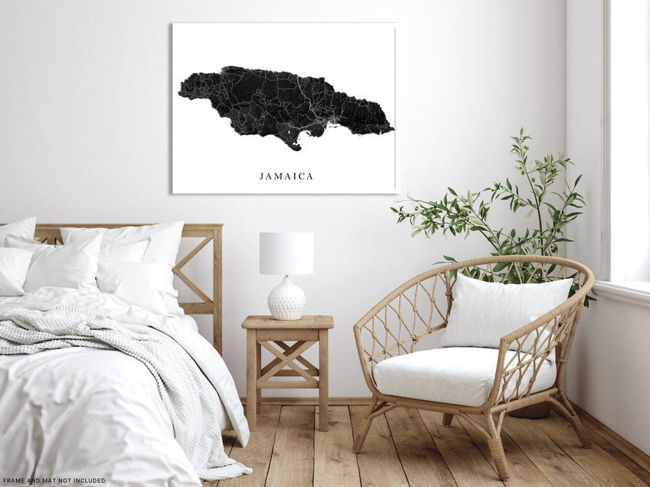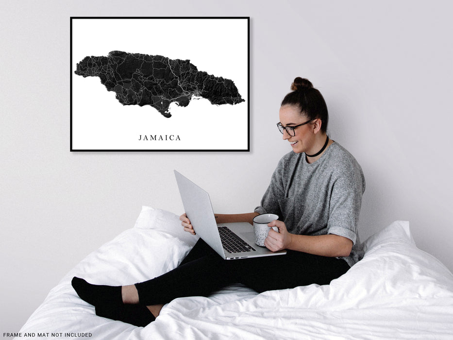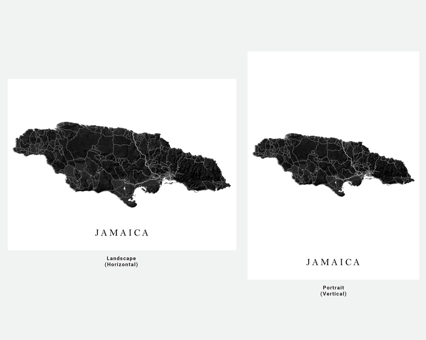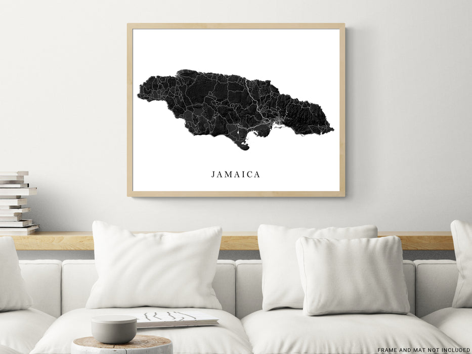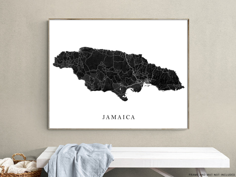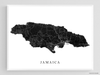 Jamaica Map Print Poster, Black and White Caribbean Island Wall Art Prints, Negril Kingston Ocho Rios Montego Bay
