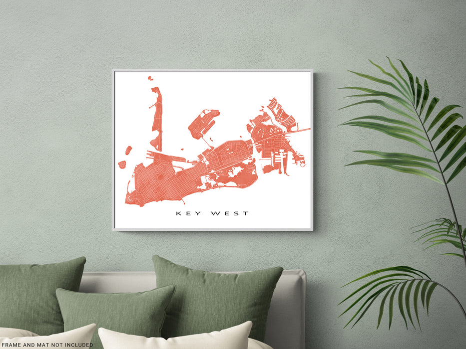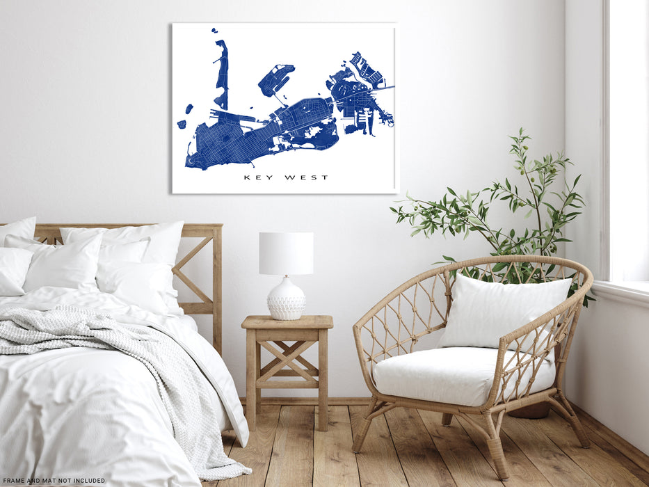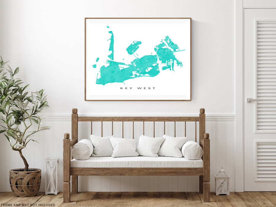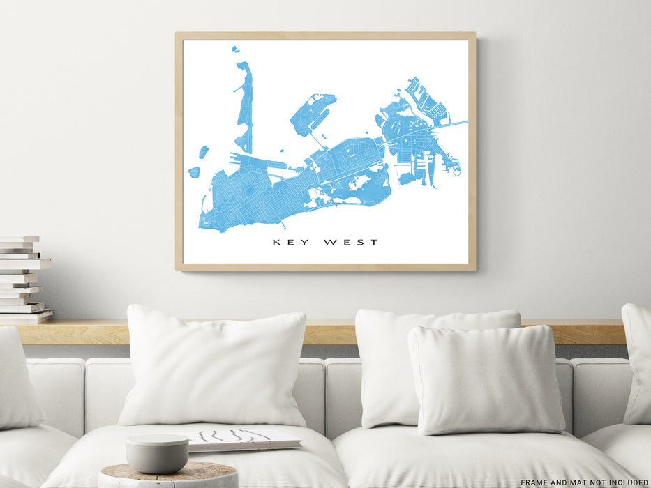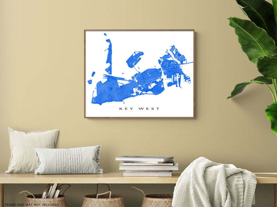 Key West Map of Key West Florida Keys Wall Art Print Poster, Keywest FL Maps