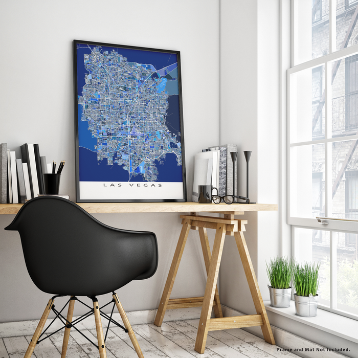 Las Vegas Map Print, Blue Geometric Vegas Valley Strip City Wall Art Poster Maps