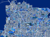 Las Vegas city streets, water features and thousands of blue shapes are mosaicked into a regional map art design of Las Vegas Valley (includes the cities of Las Vegas, Henderson, North Las Vegas and the unincorporated towns of Paradise - the 'Strip' area - and Enterprise).